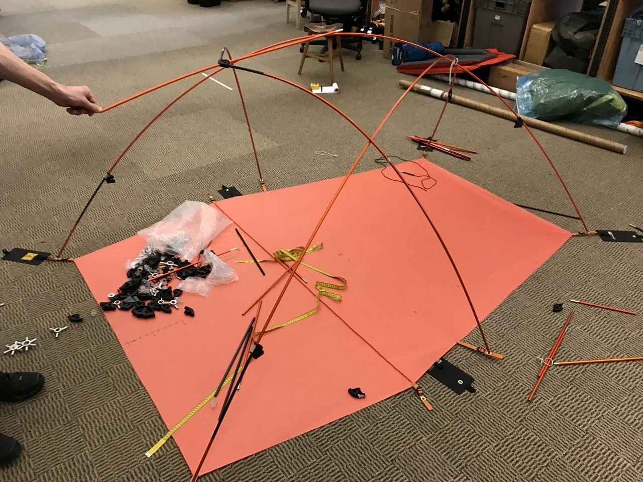 It starts with a sketch, but quickly moves into a full scale mock of the pole set. The lion share of the tent design is in the frame. And it’s a balance of form, function, ease of use, & cost.